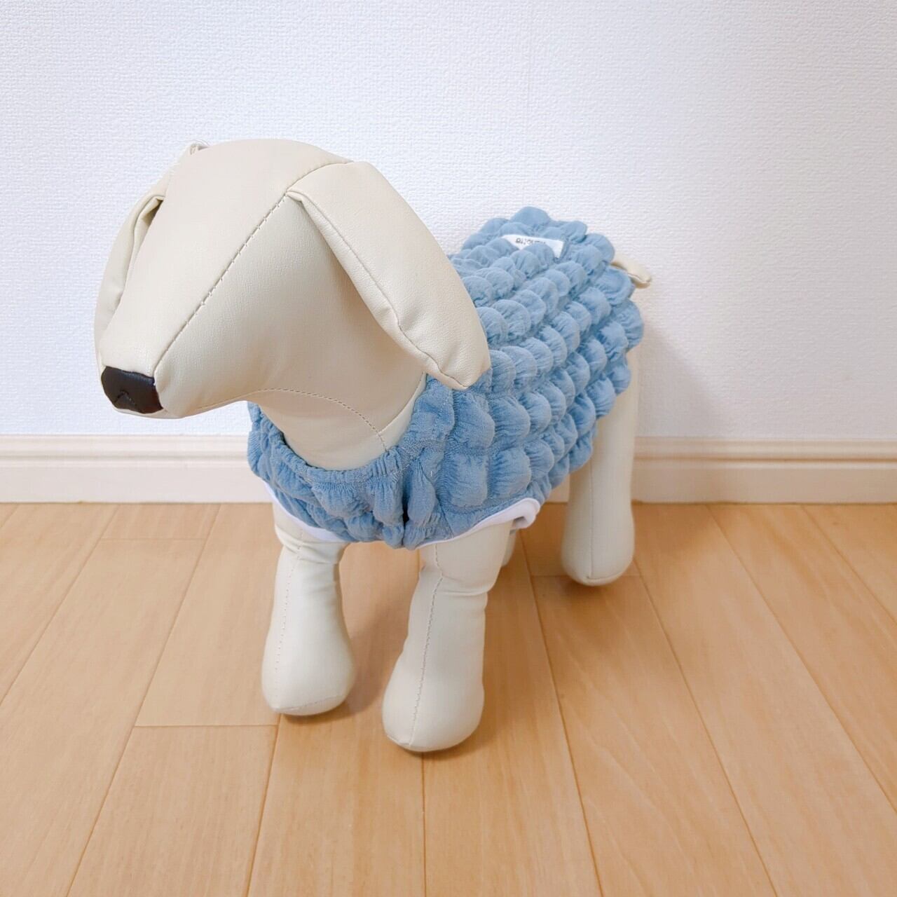 ぽこぽこエンボーワッフルニットタンクトップ(ブルー) 犬服【ハンドメイド】
