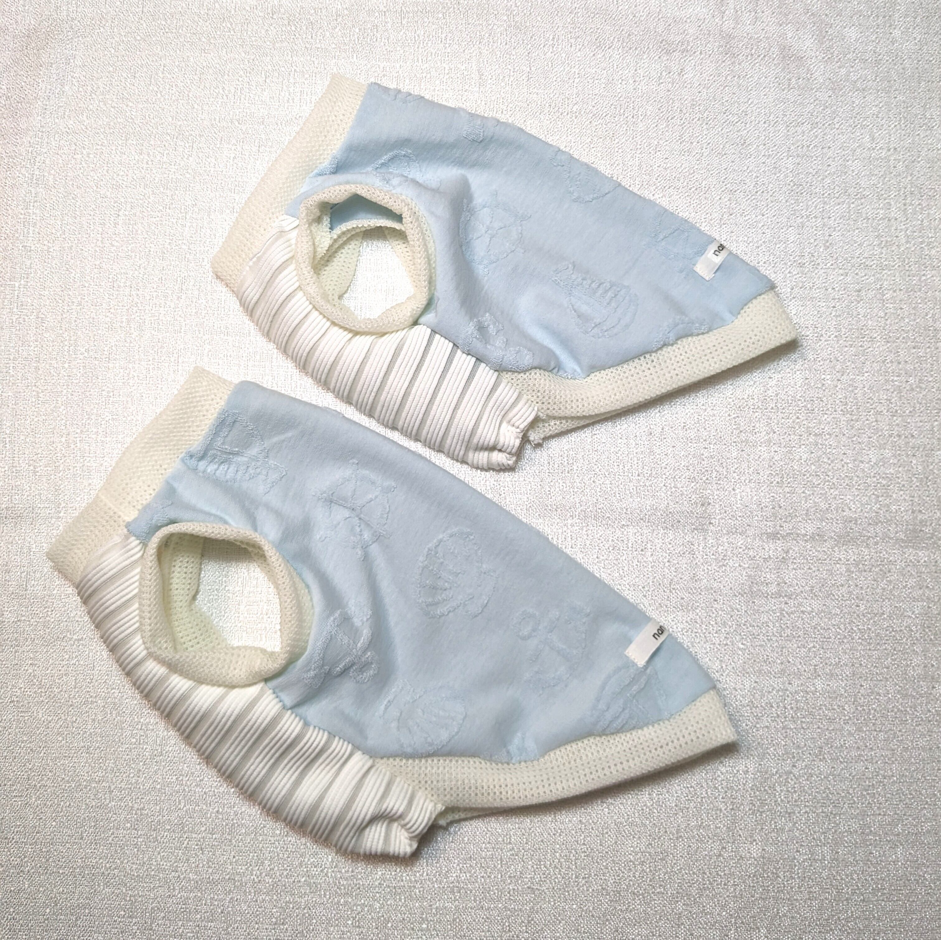 マリン柄パイルニットタンク(マリンブルー) 犬服【ハンドメイド】