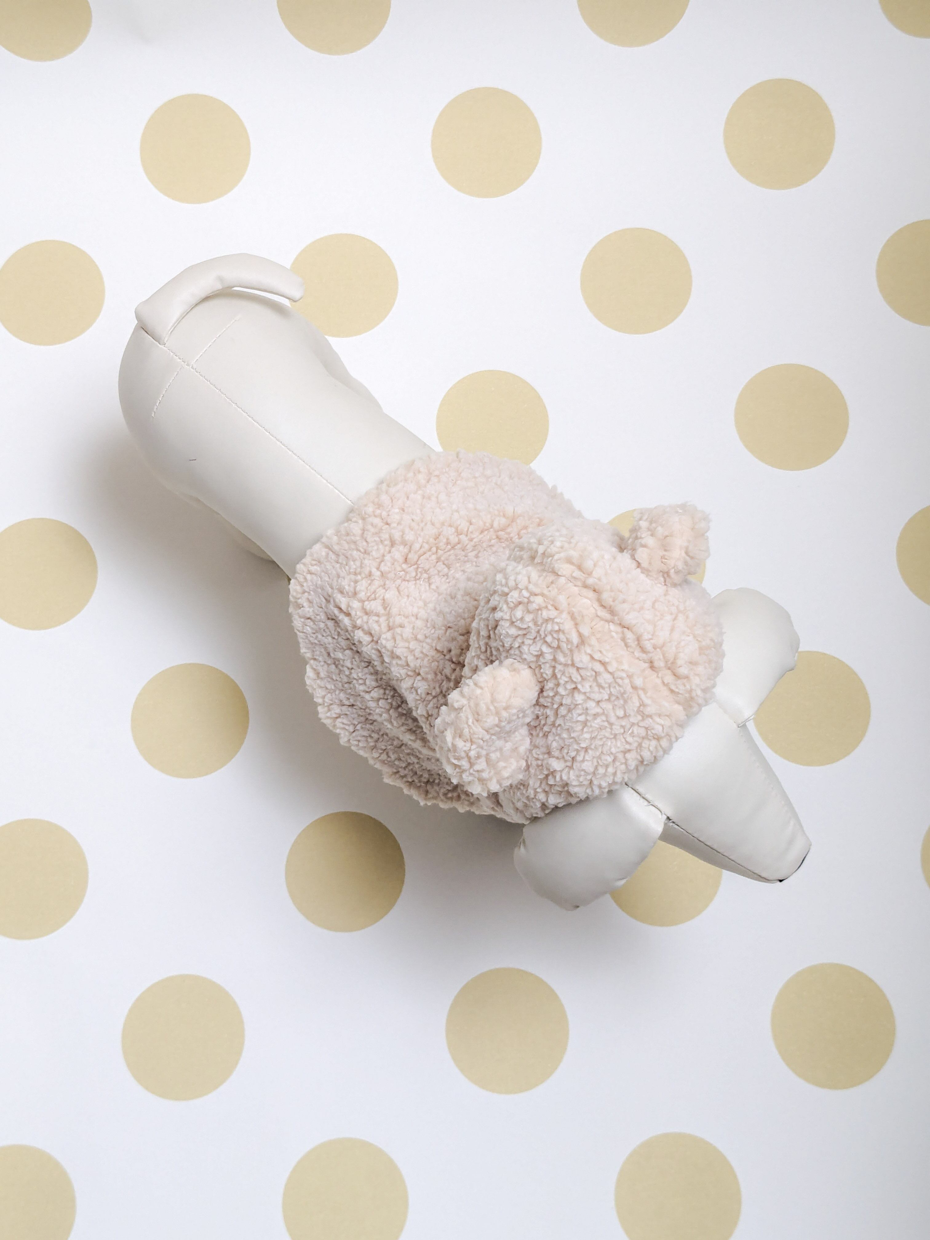 くま耳がついた、冬のおでかけにぴったりなボア生地のポンチョです。